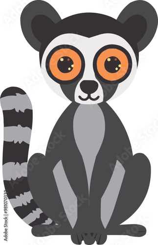 © Svitlana, Naklejka premium Cute lemur icon flat on white isolated background, vector design.