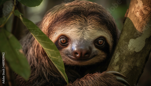 Fototapeta premium Cute lemur looking at camera in tropical rainforest habitat generated by AI