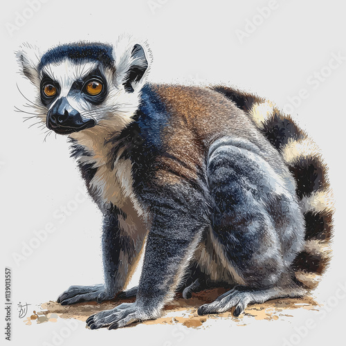 Fototapeta premium Cute lemur sitting on the ground in a natural habitat showcasing its...