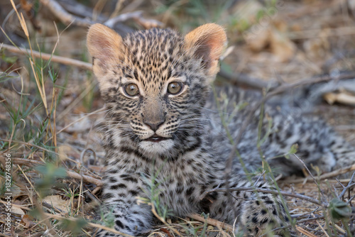 Obraz premium cute leopard cub in the bush of Khwai, Botswana
