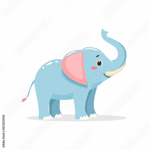 © Feri, Obraz premium Cute light blue cartoon elephant, profile view, cheerful expression.