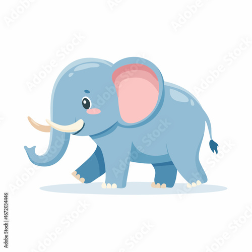 © Feri, Fototapeta premium Cute light blue elephant cartoon, walking, profile view, cheerful expression.