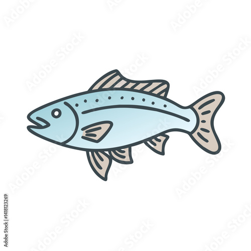 Fototapeta premium Cute, Light Blue Fish Cartoon Vector Illustration Design