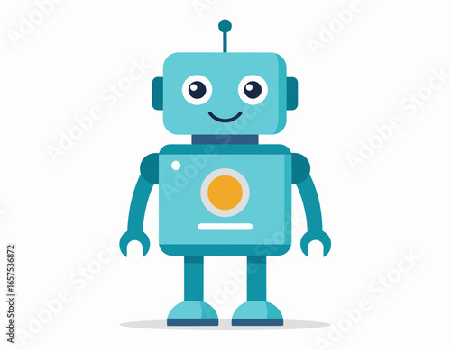© vuni, Fototapeta premium Cute Light Blue Robot with Happy Expression.