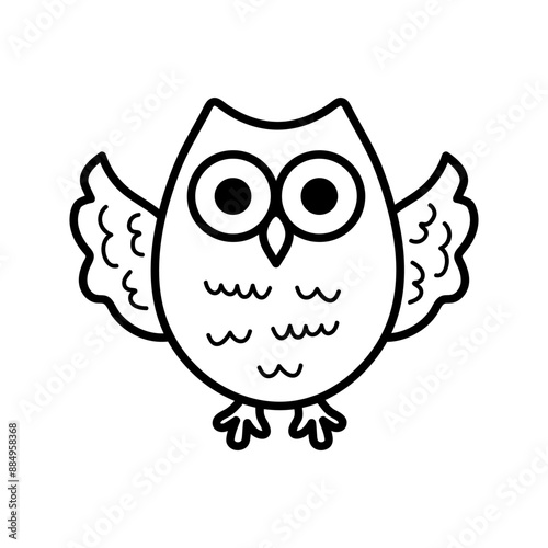 Fototapeta premium Cute line art owl. Funny doodle owl character. Coloring book for kids. Nursery art style.