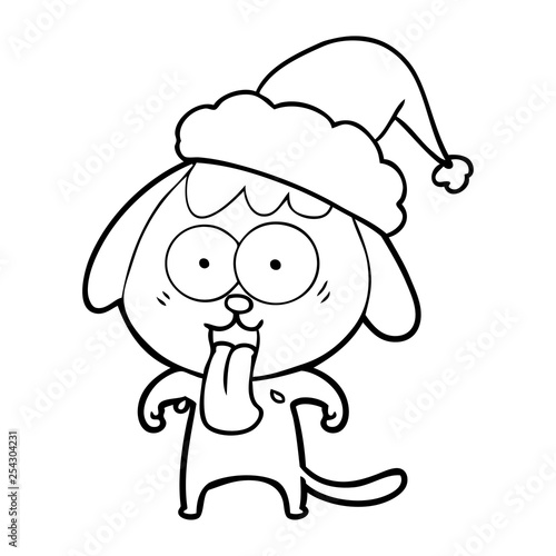 © lineartestpilot, Obraz premium cute line drawing of a dog wearing santa hat