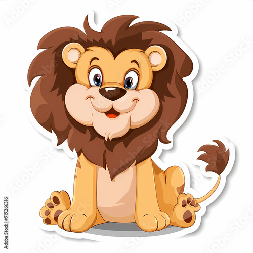 © Akharadat, Obraz premium Cute Lion cartoon on a White Canvas Sticker,vector image