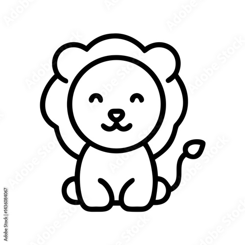 © irina, Obraz premium Cute lion character with a cheerful expression sitting on a plain background, showcasing a playful and friendly design style