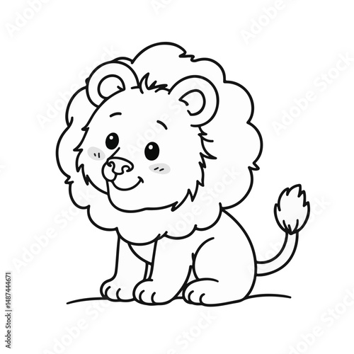 Naklejka premium Cute Lion Coloring Page with Simple Lines for Kids' Art Projects, Educational...