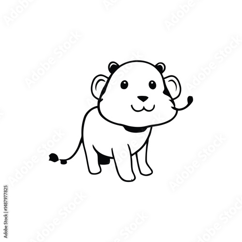 Fototapeta premium Cute Lion Cub Cartoon, Playful Baby Animal Illustration, Adorable Furry Character with Round Features, Minimalist Black and White Vector