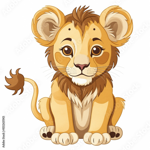© Nataliya Selyutina, Obraz premium cute lion cub on white background, applique for children's t-shirts