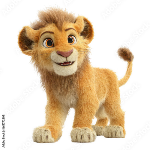 © Rajibmro, Obraz premium Cute lion cub standing, isolated on transparent background