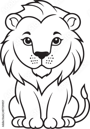 © Swapna graphics, Obraz premium Cute lion line art illustration icon design, solid white background
