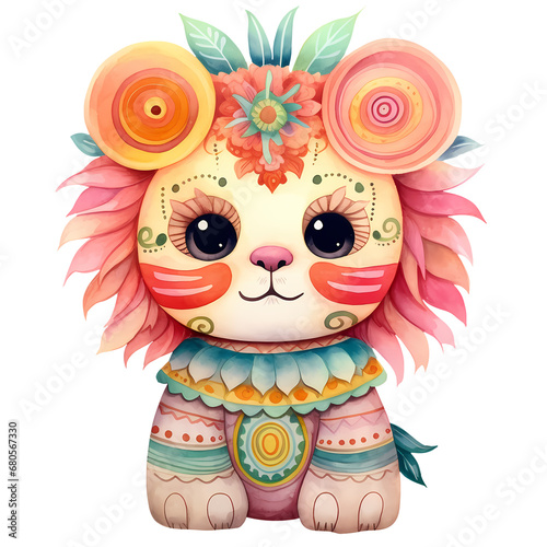 © pisan, Fototapeta premium Cute Lion Mexican Watercolor Clipart Illustration
