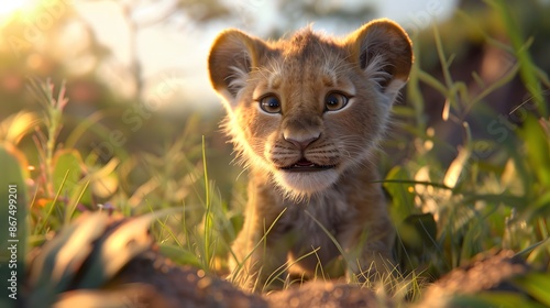 © Farid, Fototapeta premium Cute lion sitting isolated on white background.
