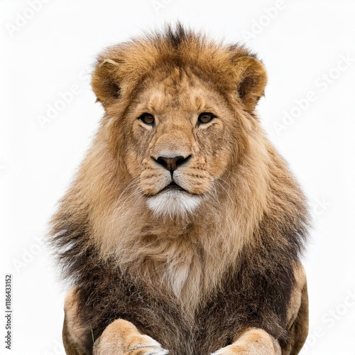 © Rindi, Obraz premium Cute lion sitting isolated on white background. Generated image