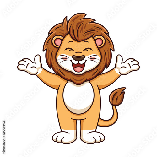 Obraz premium Cute lion with funny pose. Vector cartoon illustration isolated on white...