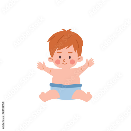 Obraz premium Cute little baby boy in diaper, flat vector illustration isolated on white.