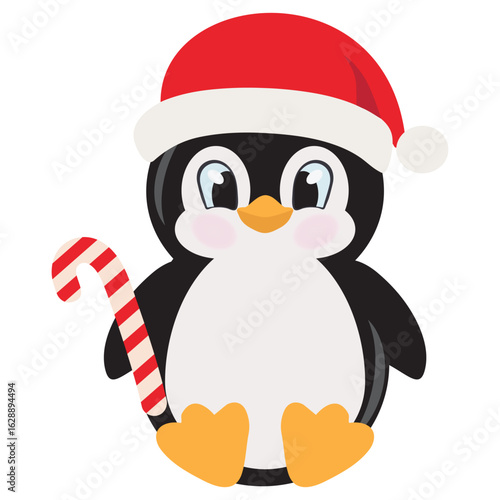 © primus44, Naklejka premium Cute little baby penguin in Christmas hat vector cartoon illustration