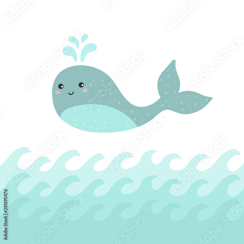 Naklejka premium Cute Little Blue Whale, vector illustration
