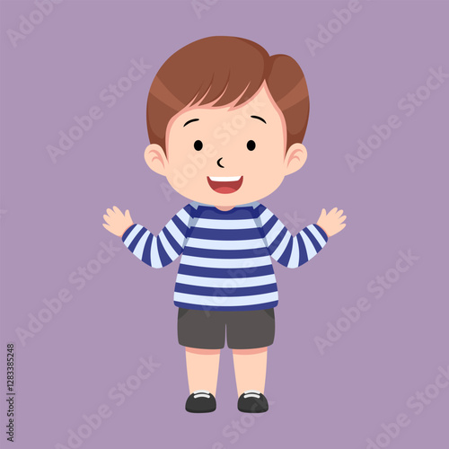 © Piyapi, Obraz premium Cute little boy say hi suitable for children book