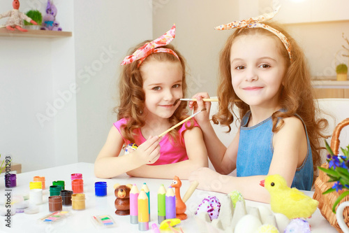 © Saksoni, Fototapeta premium Cute little child wearing bunny ears on Easter day