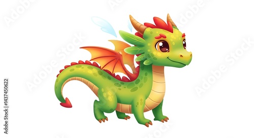 © Awan, Fototapeta premium Cute Little Dragon Standing on White Background