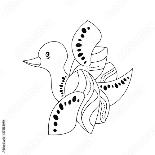 © celinn, Fototapeta premium Cute little duck. Flying. Coloring page. Black and white. Vector illustration.