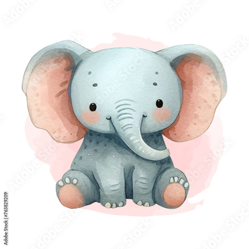 Fototapeta premium Cute little elephant watercolor illustration