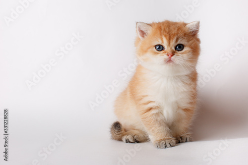 Fototapeta premium cute little ginger kitten on a white background, cute pets concept
