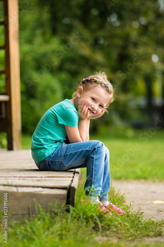 © forget_me_not_18, Naklejka premium Cute little girl in the park in summer day
