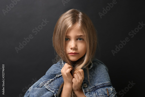© Pixel-Shot, Fototapeta premium Cute little girl on dark background