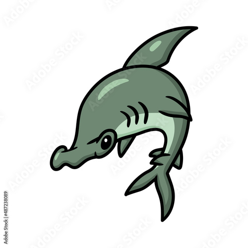 Fototapeta premium Cute little hammerhead shark cartoon jumping