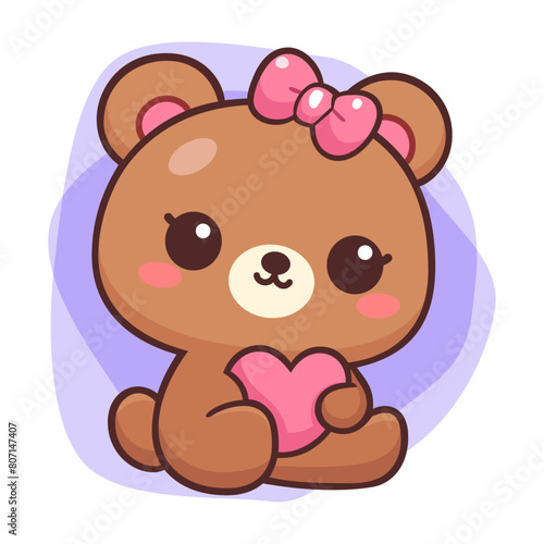 © epiic, Obraz premium Cute little happy bear hugging heart. Cartoon digital art illustration. Isolated on white