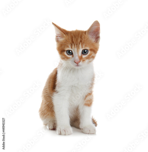 Fototapeta premium Cute little kitten sitting on white background