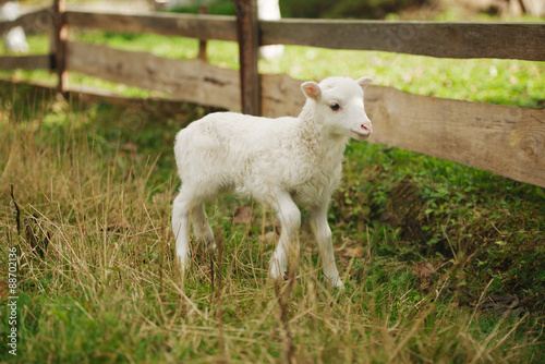 © Aliaksei Lasevich, Obraz premium cute little lamb in the paddock