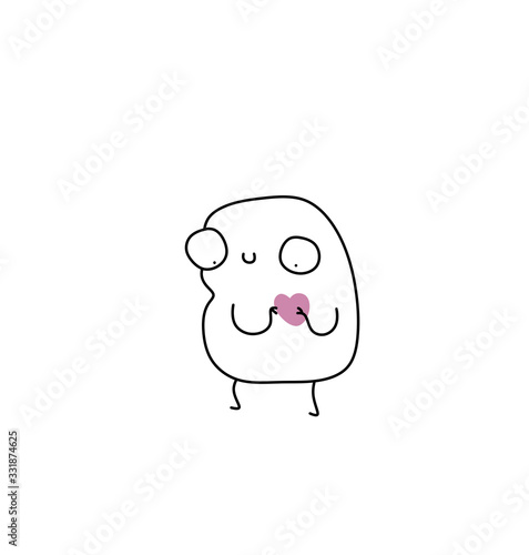 © Kim, Fototapeta premium Cute little man holding a heart children 's illustration