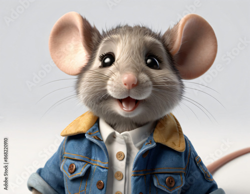 © PiotrW, Obraz premium Cute little mouse in the jeans, słodka mała w kurtce jeansowej, animacja, grafika, 3d