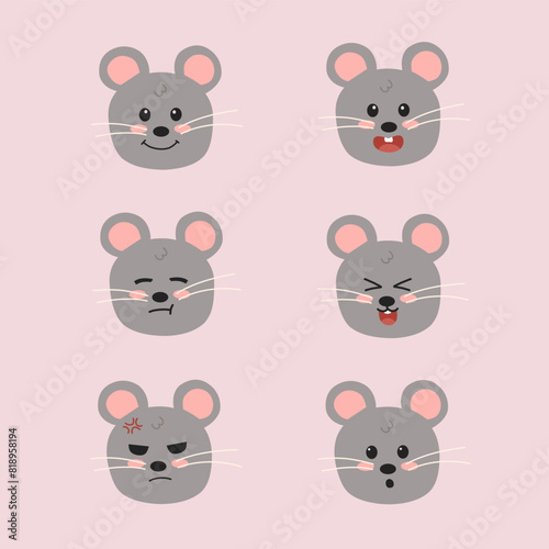 © zalsa, Obraz premium Cute little mouse with various emoticon vector set
