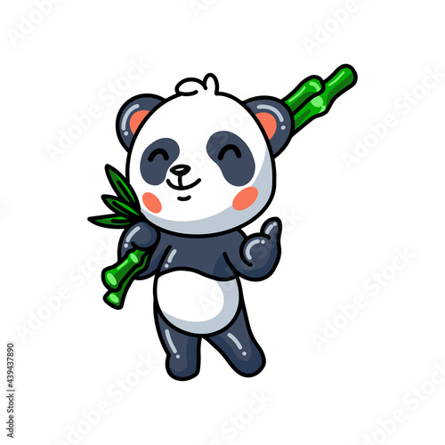 © frescostudio, Naklejka premium Cute little panda cartoon holding bamboo