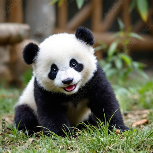 © ajiedoang, Fototapeta premium Cute little panda expressing itself