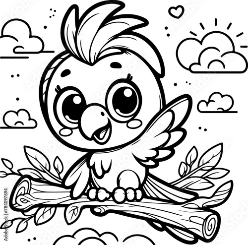 © bramthestocker, Obraz premium Cute little parrot black outline children coloring book.