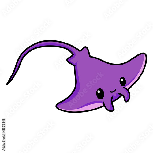 Obraz premium Cute little purple stingray cartoon swimming