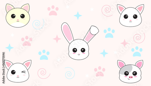 © Purnama, Fototapeta premium cute little rabbit, cat and pig background
