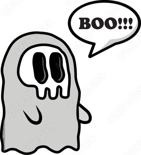 Obraz premium Cute little skull faced ghost boo speech bubble vector
