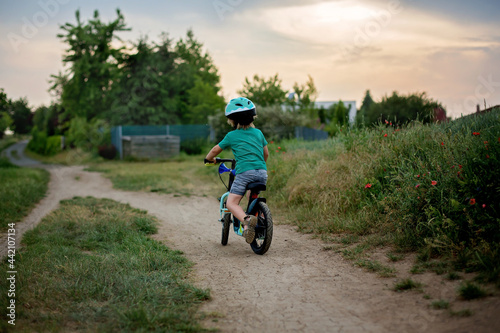 © Tomsickova, Obraz premium Cute little toddler child, riding a bike in the park