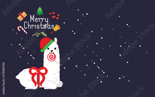 Fototapeta premium Cute llama and alpaca with Christmas holidays theme. Cute design for nursery, poster, Merry Christmas, birthday greeting card. Vector illustration.