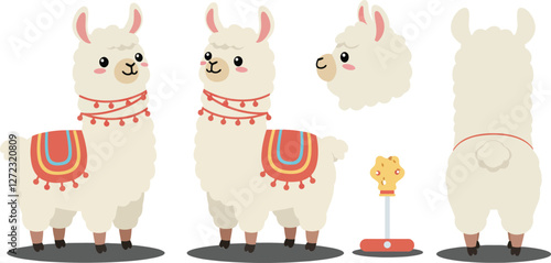 © Royal Ability, Fototapeta premium Cute llama character design in flat style showcasing multiple angles vector illustration