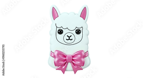 Fototapeta premium Cute Llama Character with Pink Bow
