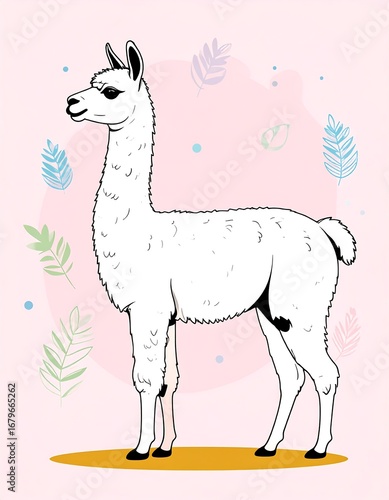 © Ramaa, Fototapeta premium Cute llama illustration with pastel floral background